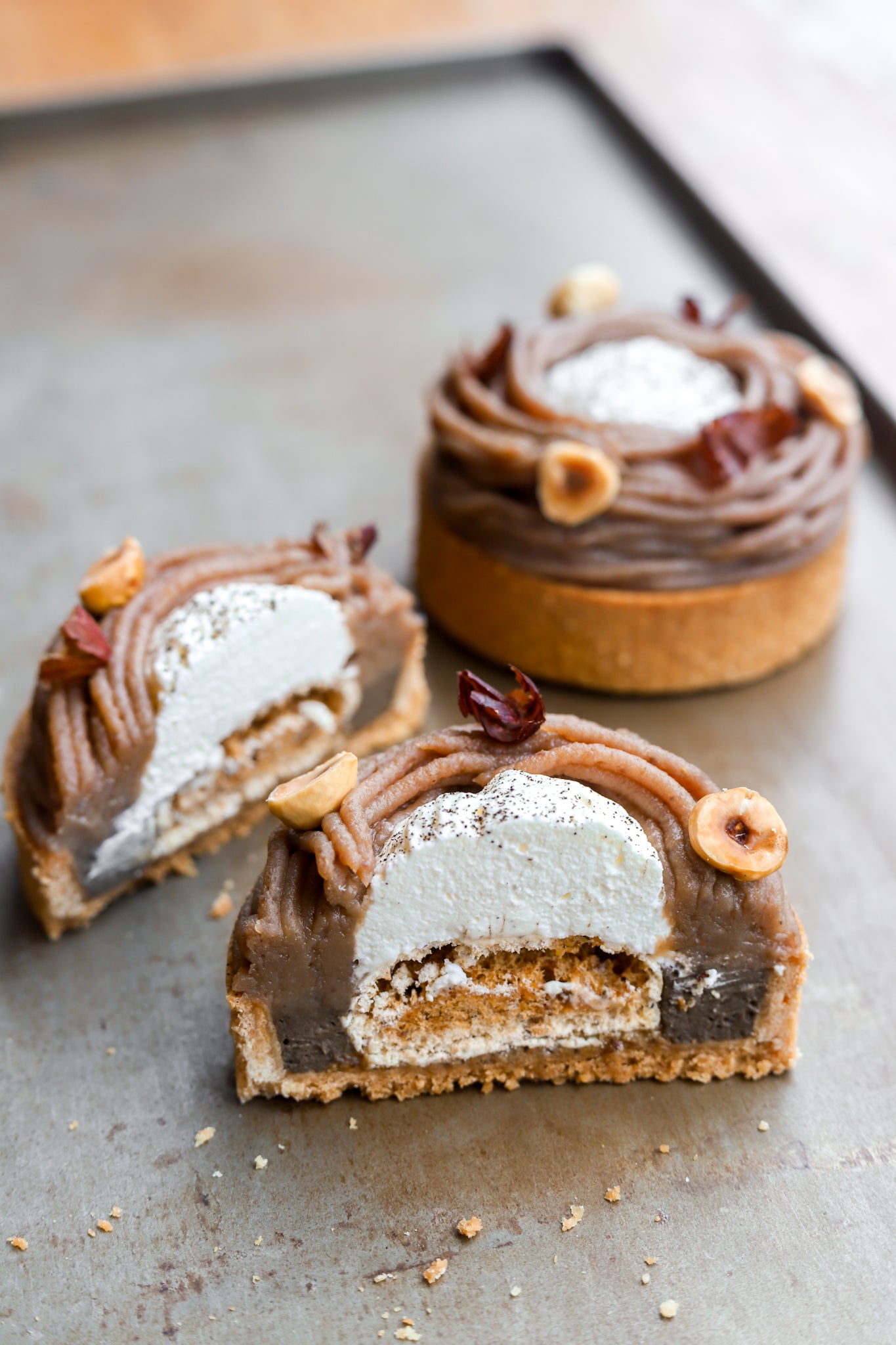 A body-built chestnut barquette. Chestnut overload, complemented with hazelnut and hojicha flavors. The best dessert option for the season